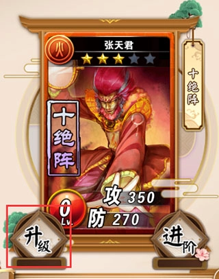 于封神榜界面里,轻点任意一张卡牌,便能进入卡牌进阶界面。对卡牌进行升级,不仅能够解锁卡牌技能,还可提升卡牌属性。由此可见,在前期阶段,升级卡牌、增强战斗力才是关键所在。