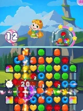 通过交换相邻两颗糖果的位置,让4颗颜色一样的糖果在同一行或同一列中连成直线,此时在交换的位置会产生一种特殊效果。若再次对该特殊效果进行消除操作,就能将一整行或一整列的糖果都消除掉。