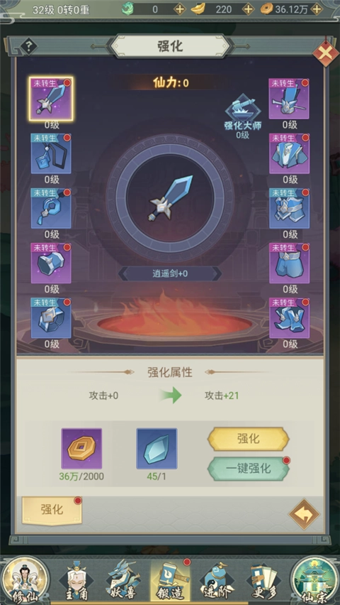 3、只需一键强化,就能实现武器升级。