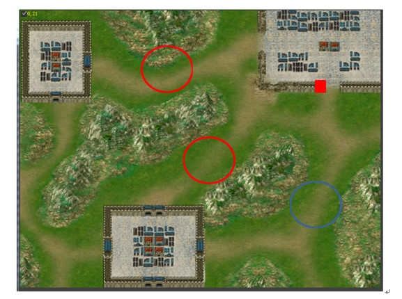 需要注意的是,蓝圈区域会出现无限复活的破甲副将,应对方法是让驻守在红色方块处的人员不要击杀他们,就让这些副将在城门口“罚站”。另外,红圈部分各自设有一波伏兵。