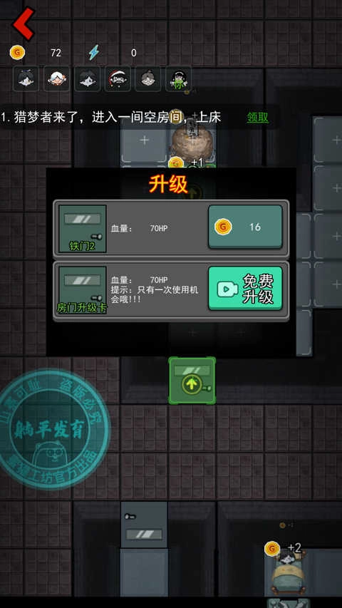 4、游戏开局优先升级门,接着建造炮台,随后升级床铺,要知道,床铺的等级高低关乎游戏的成败。