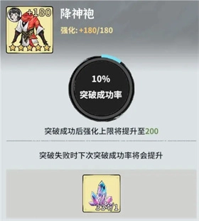 每当装备提升20级,就需消耗1次造化结晶来进行突破。造化结晶能够提高突破几率,然而装备等级越高,突破几率越低。值得注意的是,造化结晶提升的几率会持续保留,并且随着造化结晶的不断消耗,突破几率还会逐步升高。
