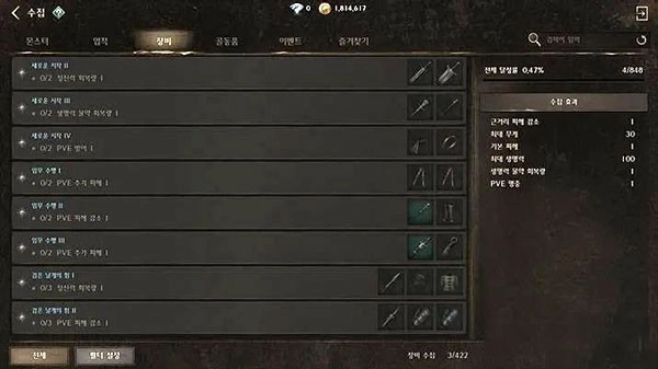 最让人满意的是,依据成长的阶段性,构建了名为收藏品的收集系统。需要收集的装备均显示独特号码,并且还提供各类材料与装备的获取途径等内容。