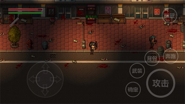 游戏玩法十分简易,采用经典横屏模式。左手操控警察移动,右手则负责控制攻击、奔跑、背包、武装以及确定这五个按键。由于丧尸爆发,在前往救援家人的路上,会涌现出大量丧尸群。我们所能做的,便是拿起手中武器,将它们统统消灭。