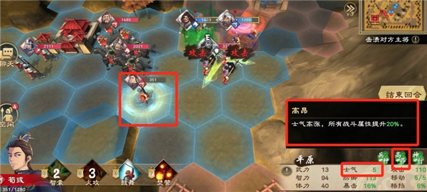 士气的上限设定为6,下限则是0。每当士气上升或者下降1点,武将的攻防属性就会相应地增加或者减少10% 。