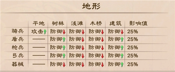并且依据兵种的差异,会使格挡率、暴击率、反击率、夹击率这四率出现不同程度的增加或减少。