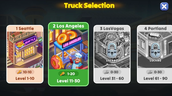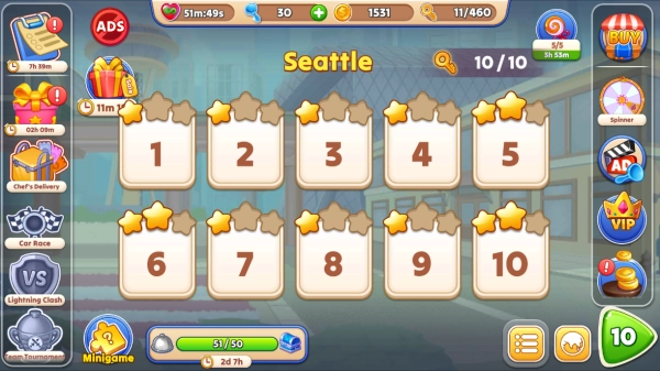 4、当完成了一个阶段也就是一家餐厅的全部关卡,即可进入下一个餐厅