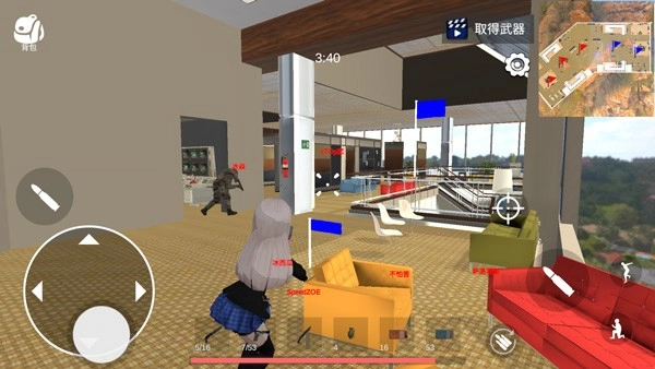 3、通过左下角的摇杆来控制移动,利用右侧的准星图标进行瞄准操作,而子弹图标则用于控制开火动作。