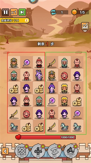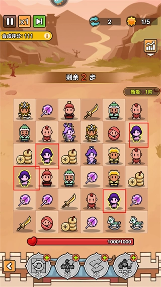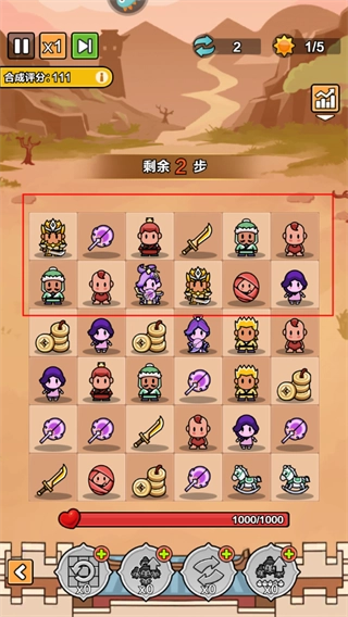 首先大家要知道的是:这款游戏如果想要合成高阶武将一定要让消除的时候达到4次或者5次以上的消除,这样才能够合成高阶武将。所以,我们在消除的时候要众览全局,尽量把所有的同样类型的旗子放到一起去消除。这样我们才能够拥有高阶武将的机会,而对战的过程中如果没有高阶武将是没有办法阻挡敌人的步伐的。