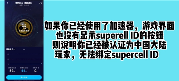 2、要是你已启用加速器,然而游戏界面并未出现superell ID的按钮,这就表明你已被认定为中国大陆玩家,无法绑定supercell ID。