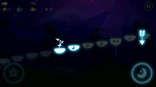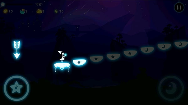 玩家需要观察屏幕上白色台阶上的星月图案,按下屏幕左下方和右下方对应的星月图案。如果键正确,角色前进一次并触发相应的钢琴声。按错键将触发暂停惩罚。