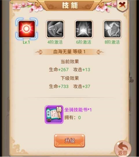 4、提升等阶能够激活相应等阶的技能,最后一个技能可开启并获得稀有属性效果。