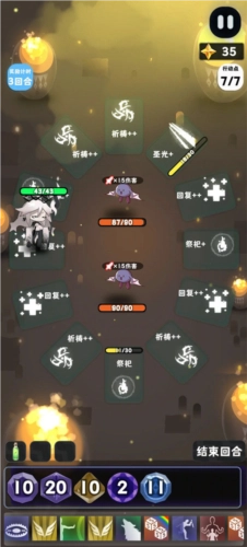 5、行动点耗尽后,只能通过结束本回合进入敌方回合,当然也能主动选择结束回合。