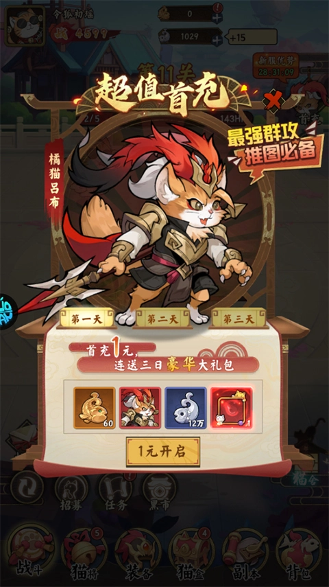 《猫狩纪》正版,这是一款别具一格的三国萌猫放置卡牌类游戏。在该游戏里,玩家会步入一个满是萌趣的三国天地,与各具风采的猫将英雄们不期而遇。此游戏融合了放置挂机、策略搭配以及多种多样的玩法,能让玩家在惬意愉悦的环境中纵横沙场,谱写独属于自己的热血篇章。作为摸鱼的绝佳之选,游戏支持随性的放置挂机模式,自动推关功能使玩家得以解放双手,而且宝箱内藏有海量资源,助力玩家轻松打造出实力强劲的阵容。策略对决的迷人之处在游戏中尽显无遗,魏、蜀、吴、群四大阵营的喵将能够自由组合搭配,让玩家领略策略对决所蕴含的无限可能性。