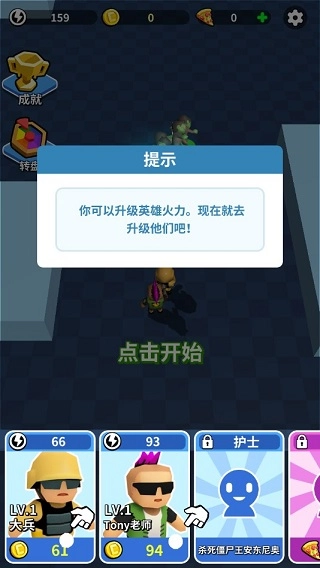 2. 通过保护同伴并杀死僵尸来获取战斗胜利,胜利后可收获金币,这些金币可用于用户角色的升级。