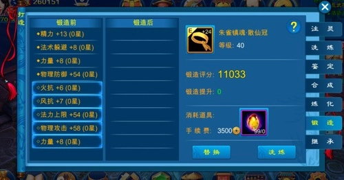 要是你对装备附加属性里带实心菱形的属性不太满意,那么能够运用锻造功能。每次都要耗费一定数量的重铸石与铜钱。在重铸的时候,带空心菱形的属性保持不变,实心菱形属性仅有一条会发生变化。