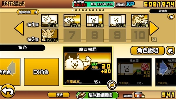 1、在守护主城的过程中,玩家将与招数诡异的各路星人展开殊死较量。与此同时,长腿喵、坦克喵、恶心喵、萌妹喵等109只风格迥异的奇葩喵震撼登场,玩家能够从中挑选并组建属于自己的喵军队。