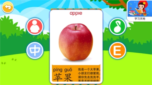 4、在学习水果的区域,能看到配有图片和语音,小朋友可以更直观地感知水果的模样。