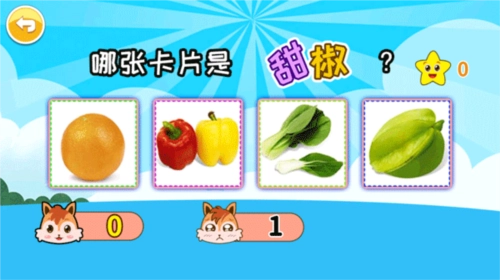 6、学到一定程度后,还能开展考一考的训练,强化对各类蔬果的认知能力。