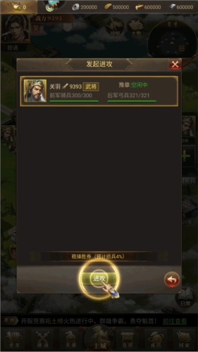 点击“进攻”按钮,向他下达指令。