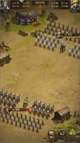 2、英雄具备武力、智力、魅力、统帅这四维属性,其军队构成分为前军(可选择骑兵或步兵)、后军(可选择弓兵或策士)