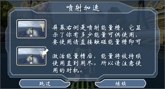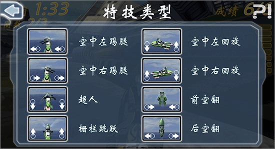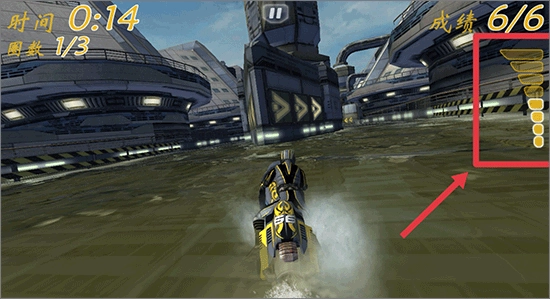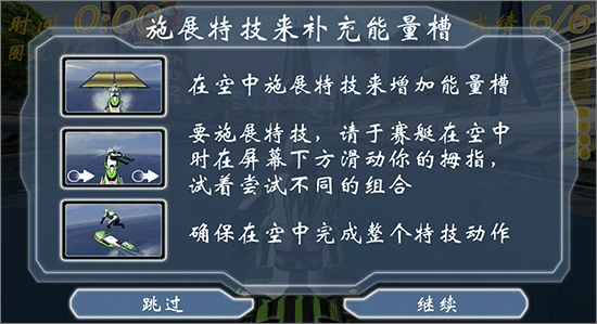 2、若要施展特技,当赛艇处于空中状态时,在屏幕下方滑动拇指,不妨尝试不同的组合。