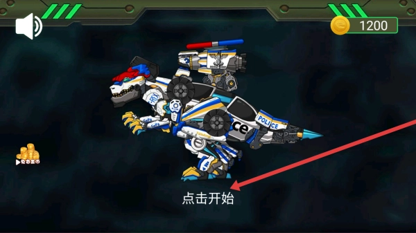 2、金币增加之后,点击开始按钮,操控机械恐龙造型的载具,进入游戏的下一个环节。