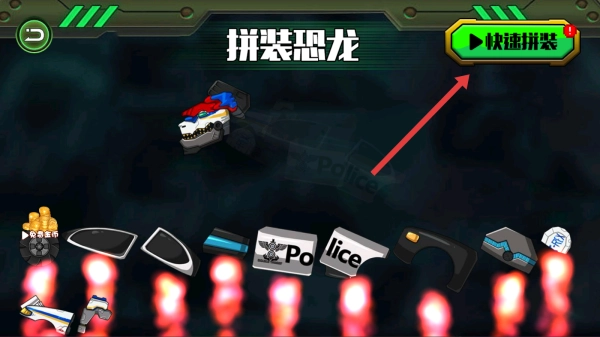 3、当您进入拼装恐龙的界面后,有两种方式来完成机械恐龙的组装流程。一是手动进行拼装操作,二是直接点击快速拼装按钮,这样就能快速完成组装。