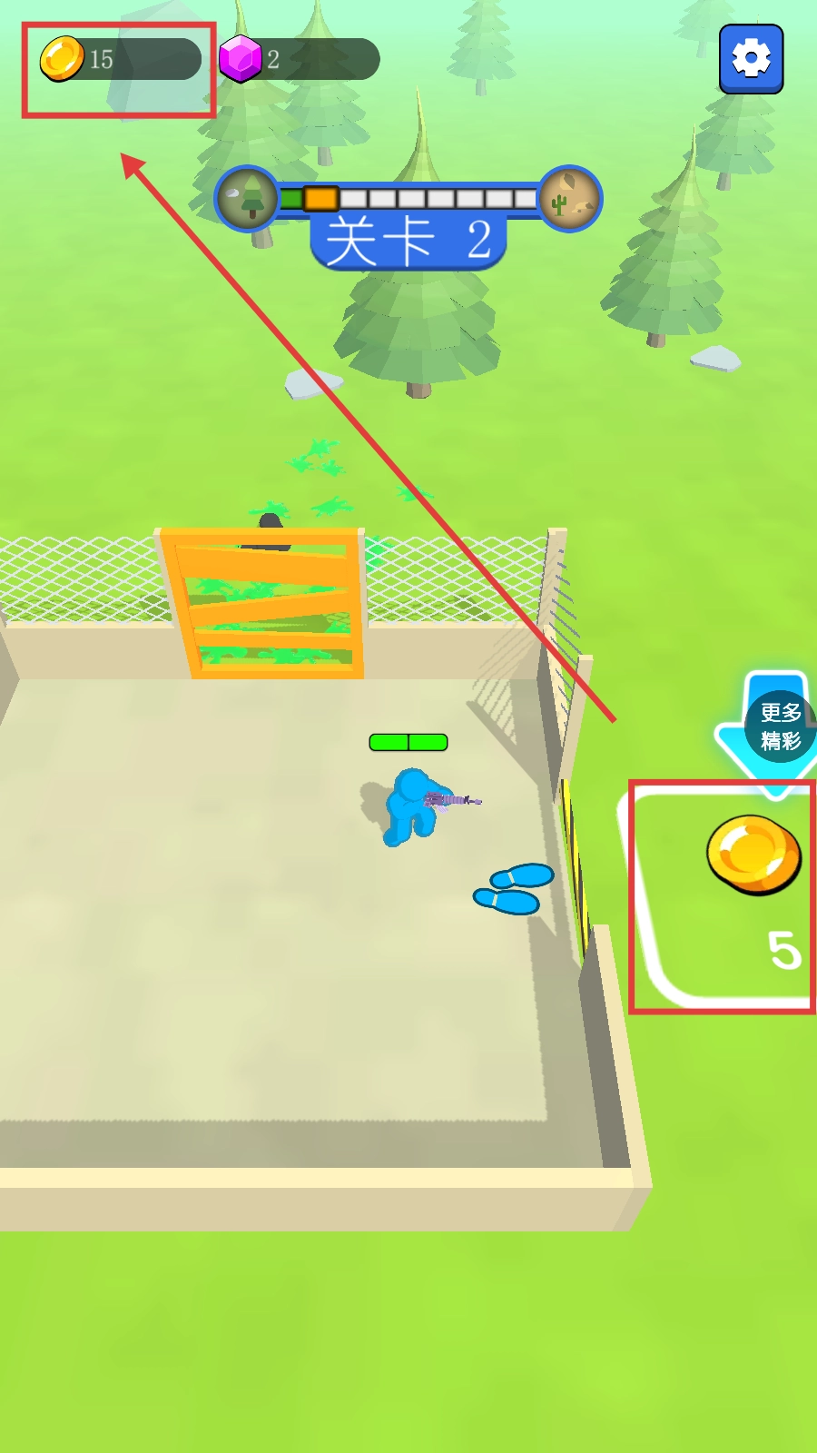 3、当来到【关卡2】时,操控角色朝着白色框内区域移动,如此便能够消耗5个货币来扩建避难所。