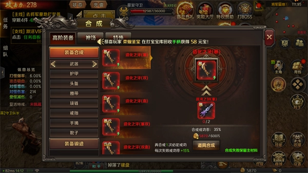 3、我们还能够对装备和宝物加以强化,以此提升各方面属性。