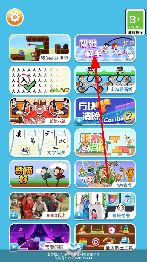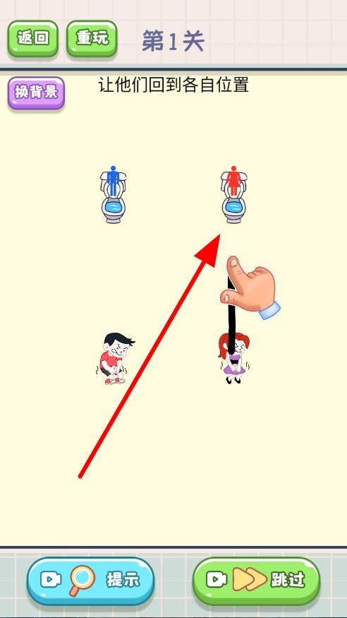 1. 第一步需选择帮她解手的玩法,进入该玩法后便能开启关卡挑战。在各个不同的关卡里,要完成让人物回到各自对应位置的任务。