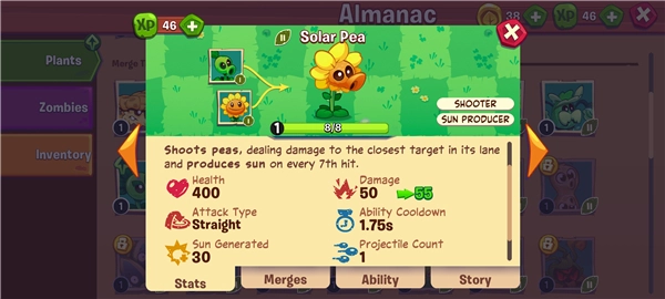 《植物大战僵尸3》国际版惊喜推出融合玩法,玩家能够把任意两个植物进行融合。不同植物彼此结合,会呈现出各异的形态。植物一经融合便会获得强化,不仅各项数值得到提升,机制也变得更为强大。举例来说,当两个豌豆射手相互融合,就会形成双发射手,它不仅血量更高,还能连续发射两次子弹;要是豌豆射手与向日葵融合,就会诞生阳光豌豆射手,每隔六发普通子弹,第七发就会射出阳光子弹,击中僵尸后会掉落阳光。快来尝试融合,打造专属于你的植物阵容,与好友一同构建繁荣的游戏社区吧!