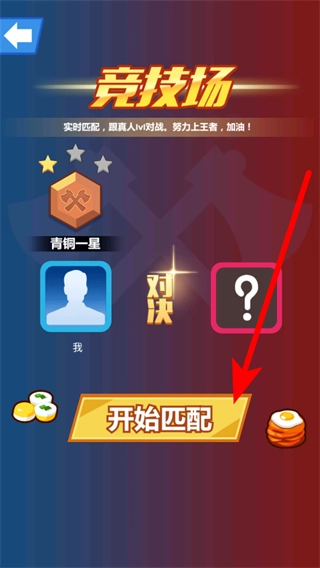 4、要是你想和真人玩家一较高下,只需点击“竞技场”,进入后再点击“开始匹配”。一旦匹配成功,就能和其他玩家开启实时对战啦。而且,努力提升自己的段位,还能收获更多乐趣哦。