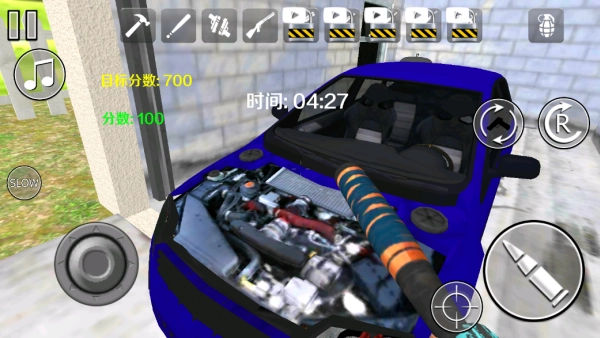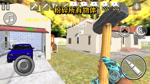 4.点击画面中央右侧的武器标志,能够切换不同的道具进行破坏。达成本关卡的700设定分数,即可获胜闯关。