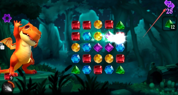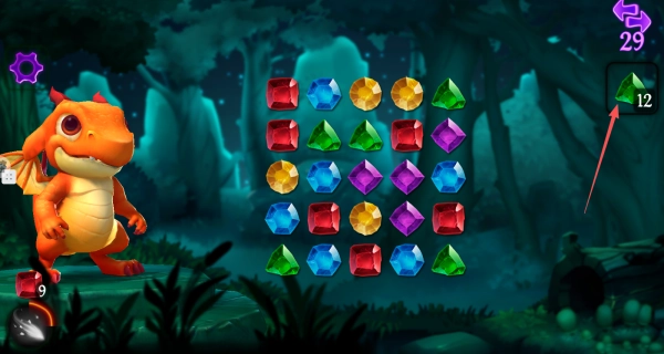 2、每一个关卡都设定了特定目标,就像在本关中,只有成功消除12颗绿色宝石,才能顺利通关。