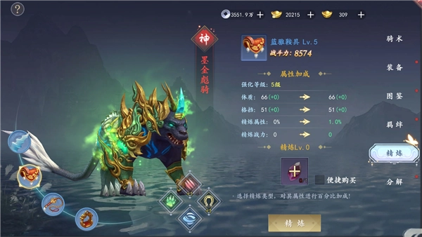坐骑装备不仅能为坐骑增添额外属性,还能够借助强化功能提升其属性,获取途径为副本挑战。