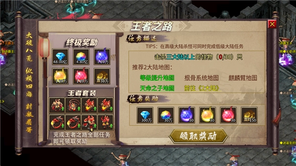 2、王者之路设有任务,点击对应的任务就能前去完成,完成后可领取任务奖励。