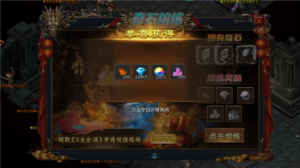 4、点击“奇石熔炼”,同样能通过熔炼获取金钻等资源。