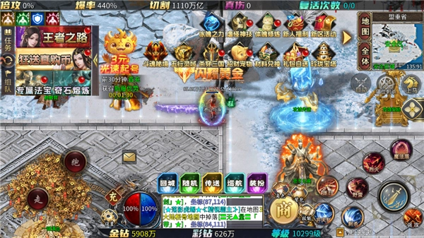 刷新速度极快,爆率超高,稀有 BOSS 轻点一下就能参与争夺。地上光柱随处可见,神装琳琅满目。