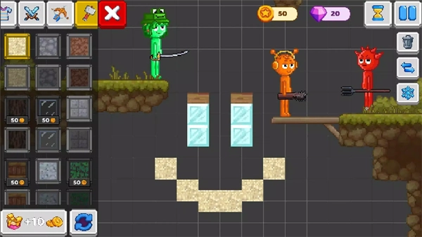 4. 当进入搭建模式,就能挑选各类方块(像草地、岩石、冰块之类)来打造场景,对角色与场景的互动布局加以调整,进而营造出独一无二的游戏环境。