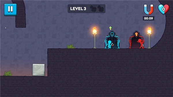 冰火火柴人是一款双人解密冒险类游戏。在游戏里,玩家将操控分别具有冰、火不同属性的两位火柴人,借助他们各自的角色属性展开冒险解谜之旅。游戏中,玩家要穿越布满元素陷阱的奇幻迷宫。这款游戏为玩家精心设计了三大主题,共60个关卡,关卡内谜题多样,每个关卡都暗藏机关,危险重重。玩家需凭借自己的奇思妙想解开谜题,持续前进,直至成功通关。