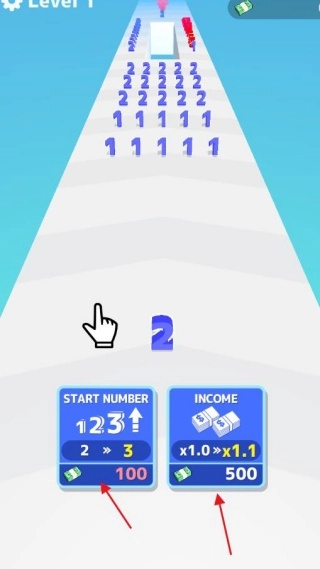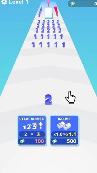 1. 通过滑动屏幕来操控数字角色的移动方向,主动向数值比自身小的数字靠近并将其吸收,以此逐步提升自身数值,达成成长进化。
