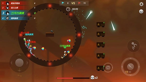 《乱斗火柴人》是一款以火柴人作为主角的动作格斗类手游。这款游戏巧妙融合了格斗、射击、闯关等多元元素,为玩家营造出轻松且刺激的战斗氛围。在游戏里,玩家将操控一个火柴人角色,于场景之中借助掉落的武器,在地形不断变换的情形下,与其他玩家展开战斗。游戏不仅具备丰富多样的地图,还有庞大的武器系统,能为玩家带来愉悦的射击体验与乐趣。而且,该游戏支持2 - 4名玩家进行本地或在线对战。