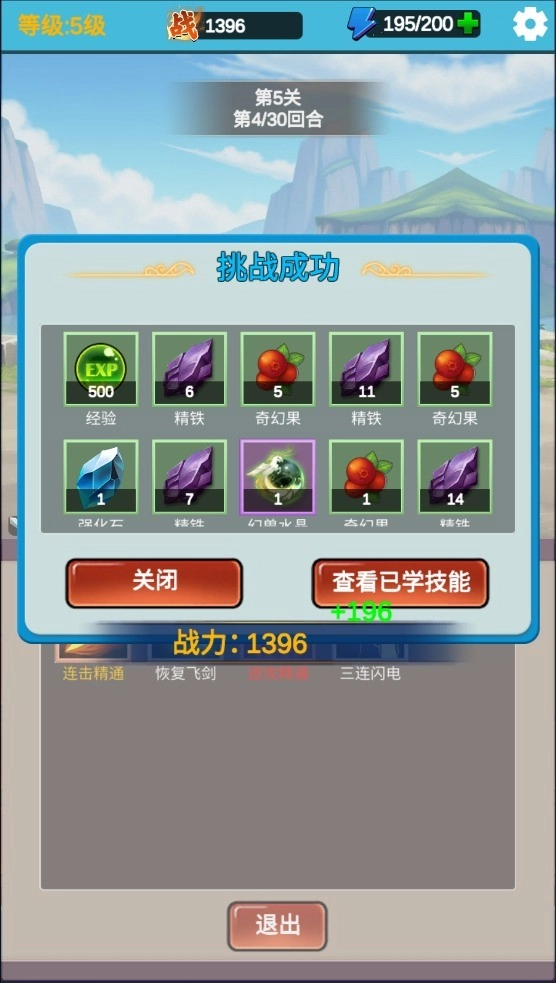 4、继续开始冒险,挑战闯关能获得大量资源材料。