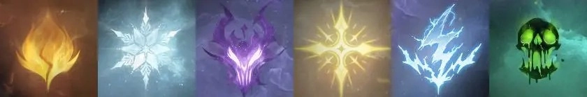 英雄依据其属性能够划分成:火焰、冰冻、腐蚀、光辉、雷电以及毒素这六大类别。