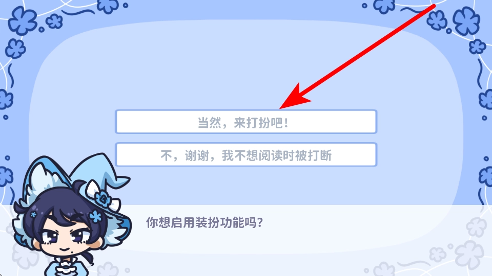 1、初次进入时,于装扮功能询问界面,点击“当然,来打扮吧”,即可启用装扮功能。