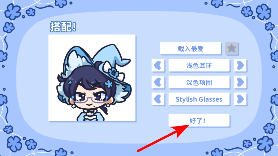 2、于装扮搭配界面,完成诸如浅色耳环这类饰品的搭配后,点击“好了”,确认装扮。