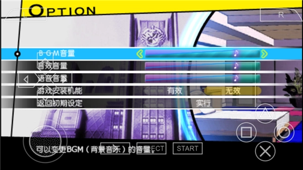 在“选项”界面里,能够对“音量、音效音量、语言音量、游戏安装机能”等进行设置。