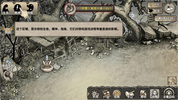 这个区域会展示你的生命值、精神值和饱食度,它们对你的游戏进程有着直接的影响。