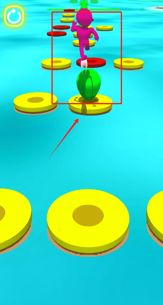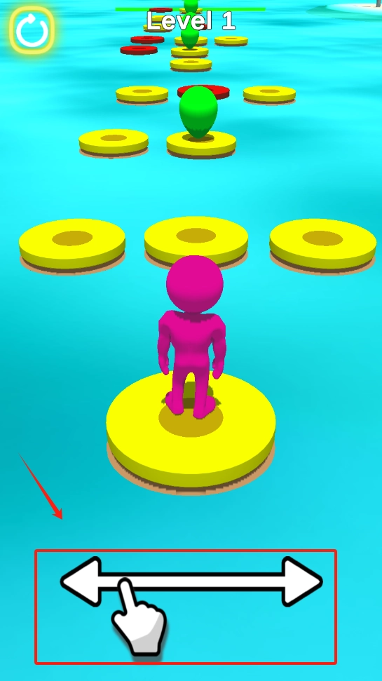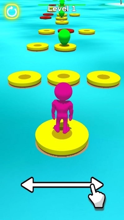 你将看到一个粉色小人站在黄色圆盘上,通过左右滑动屏幕,就能让她跳到下一个圆盘继续前进。